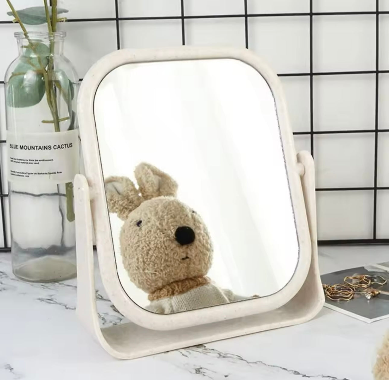 Con su diseño elegante y moderno, este espejo de maquillaje de escritorio no solo es una herramienta funcional, sino también un complemento elegante para su tocador o tocador.