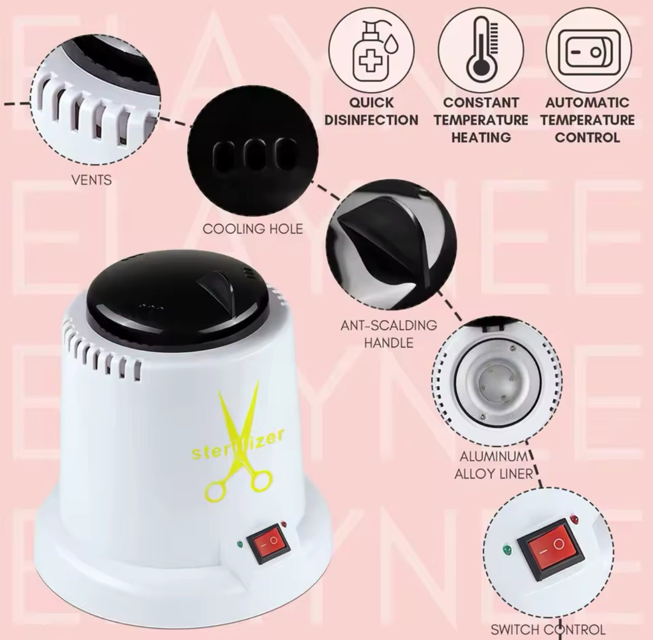 (Compacto y eficiente) El esterilizador para herramienta de uñas es pequeño y compacto, lo que no ocupa mucho espacio en el mostrador. Diseñado con múltiples orificios de ventilación, que mejoran la disipación de calor y el escape de herramientas de limpieza y esterilización de uñas como tijeras y pinzas de manera efectiva.