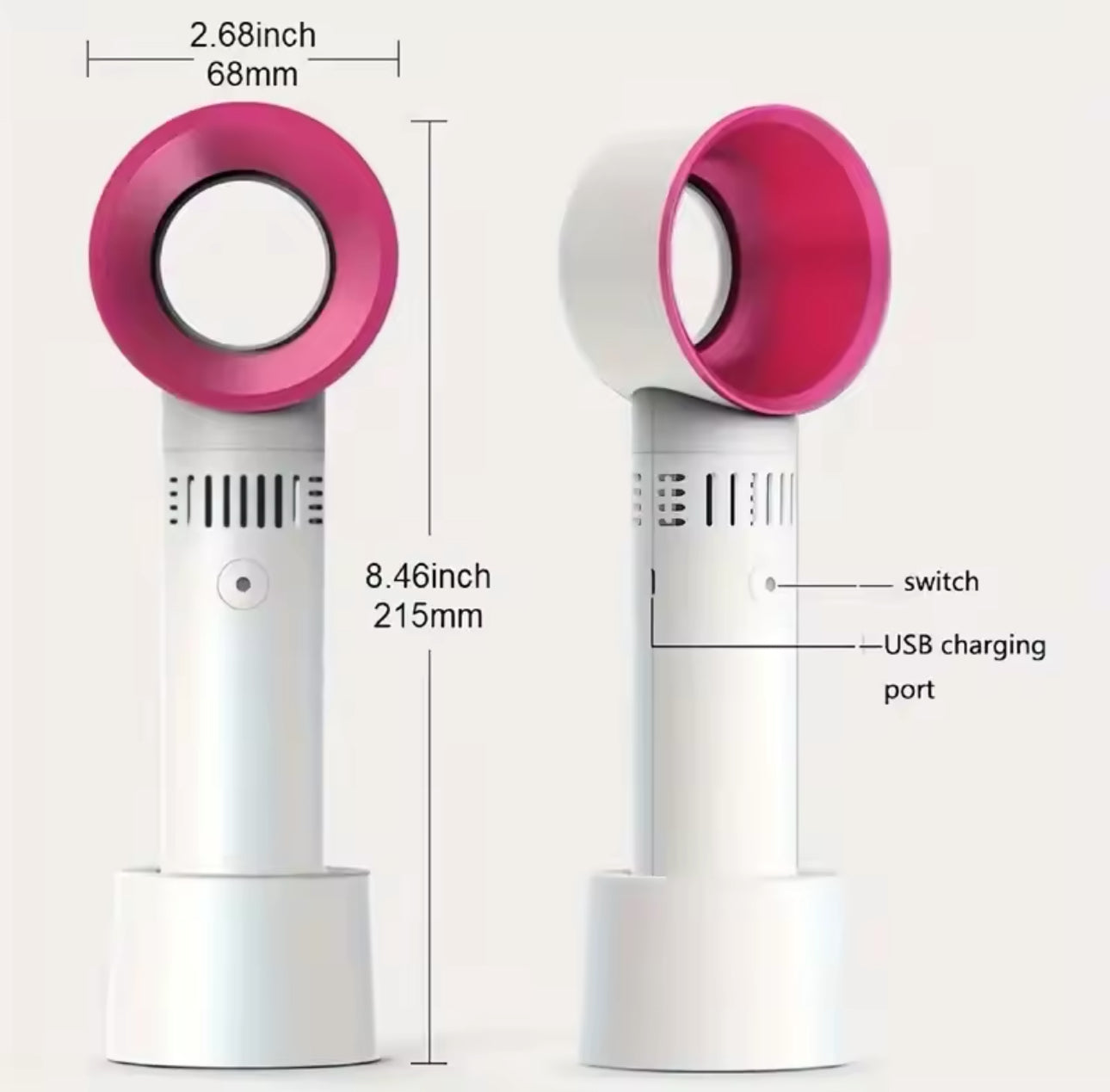 - Comodidad sin aspas: seguro y portátil. Disfrute de la brisa sin las aspas con este ventilador de mano sin aspas, lo que garantiza la seguridad de todos los usuarios, especialmente los niños. Su tamaño compacto y diseño ligero lo convierten en el compañero de viaje perfecto, que cabe sin esfuerzo en cualquier bolso o bolso.